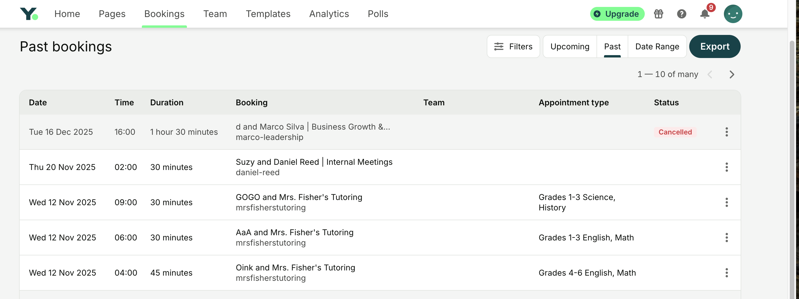 All bookings made through YouCanBook.me can be viewed directly in your linked calendar and in list or tile form on the YouCanBook.me bookings dashboard. Click Bookings from your Dashboard to view all bookings.