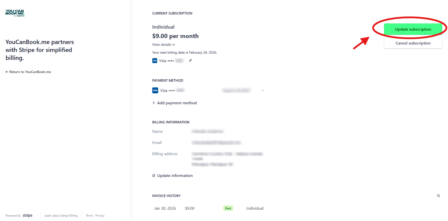 Once on the Subscription & Billing page, click Update Subscription to modify your plan