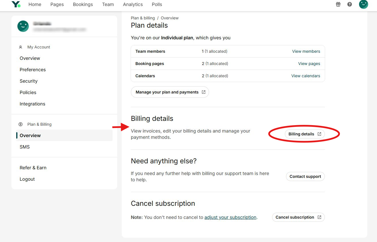 To adjust your subscription, select Billing from your Account settings. Then select Manage your plan and payments, or Billing details. Update to the subscription you prefer.